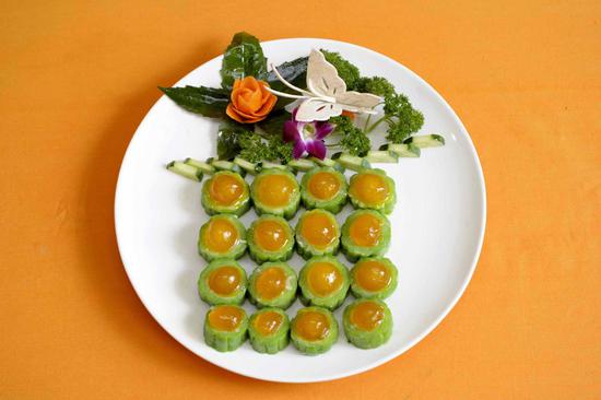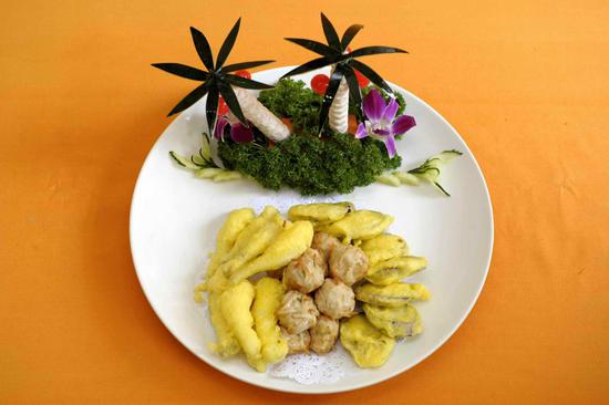 莙荙包:莙荙包的原料主要有莙荙菜和萝卜、冬笋等组成馅料的各种食材,可按个人口味不同,馅料也可灵活变通。始兴人经常娴熟地将萝卜、冬笋、香芋等食材切成丁,加入食盐和油拌匀,炒至半熟代用。