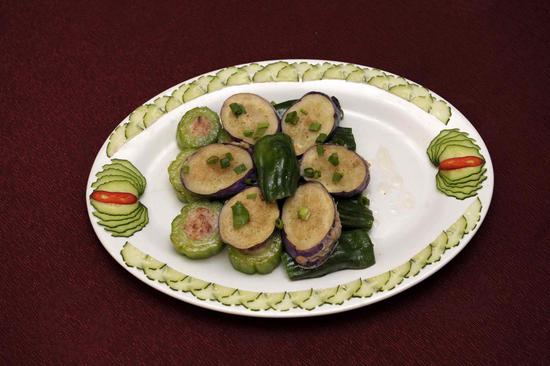 酿豆腐:把豆腐斜切成约一寸见方的三角块(你也可以切成方形),投入油锅中炸一会,再横切开,在里面塞入猪肉、糯米、大蒜、五香、辣椒粉等拌成的半熟佐料,吃时再撒上些胡椒面、葱花,其味鲜美无比。从古至今,每逢重大节日或是有客人造访,这个菜都必不可少。