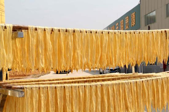 在这间低矮的小作坊里,曾祥跃和腐竹打了36年的交道。随着年纪渐长,他已无法承受制作腐竹高强度的劳动,所以在一年多前,就忍痛关停了小作坊。“因为同样的原因,在我们村跟我年纪上下的,都不再制作腐竹了。”他不无感叹。