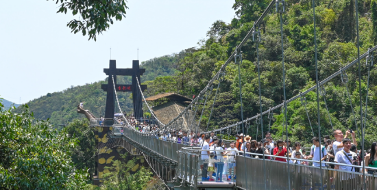 据了解,古龙峡作为广东的热门景点,依托丰富的生态资源和刺激的游乐项目,给市民游客带来更多新奇好玩、多样化的一站式度假体验,以优质、专业、细致的服务态度,承接游客们的出游热情与需求。假期期间景区内游人络绎不绝,他们或赞叹古龙峡童话般的景色,或用相机记录下此刻美好风景,游客们通过幽深小径到峡谷探瀑,或是登上云天玻霸打开俯瞰峡谷的新视角,体验刺激好玩的悬崖游乐项目,亦或是乘坐飞驰的漂流艇穿激流、越险滩、击白浪,在飞舟浪尖的激荡中体验“漂流天花板”带来的刺激快感。“第一次来古龙峡旅游,觉得景区的水特别清、山特别壮阔,第一次看到如此美丽景色,感觉太神奇了,尤其是我们在玻璃平台从上往下看简直就跟仙境一样,来古龙峡真是不枉此行。” 来自珠海的张女士说道。