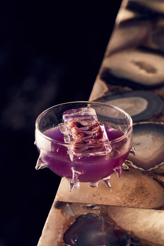 喜欢烈酒的饮客,不可错过淡紫色风情、造型独特的鸡尾酒“樱花”(SAKURA)。这款酒以碟豆花猴王47金酒和曼齐诺樱花味美思为基底,加入了话梅点睛,多款佳酿的和谐融合使鸡尾酒的层次感逐渐增强,每次回味都有不一样的体验。