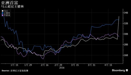 马云赶超王健林成亚洲新首富 财富增长43亿美元