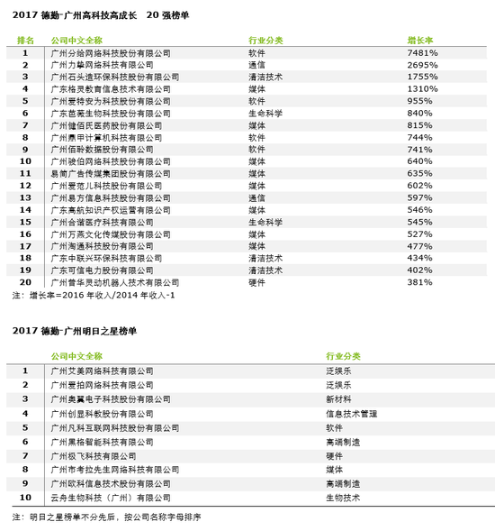 2017德勤高科技高成长中国50强发布 广州上榜企业最多