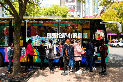 “时尚FUN价,即刻启程”快闪巴士邀你赴一场甜蜜又浪漫的时尚约会,还在等什么,快来打卡,邂逅一场属于你的时尚盛宴!