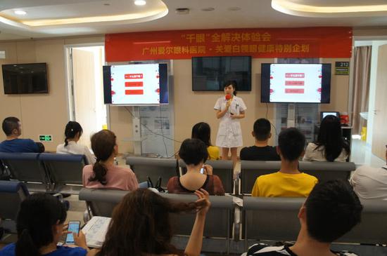 10月20日上午14:30,广州爱尔眼科医院特举办”秋来了,别让眼睛闹秋燥”干眼全解决体验会,吸引了40余名干眼朋友前来参与。本次活动由眼表角膜病科张赛赛医生深入浅出,为大家剖析了干眼、眼部螨虫,其发病的原因和防治方法以及干眼与螨虫的关系,让前来听讲的朋友受益匪浅。