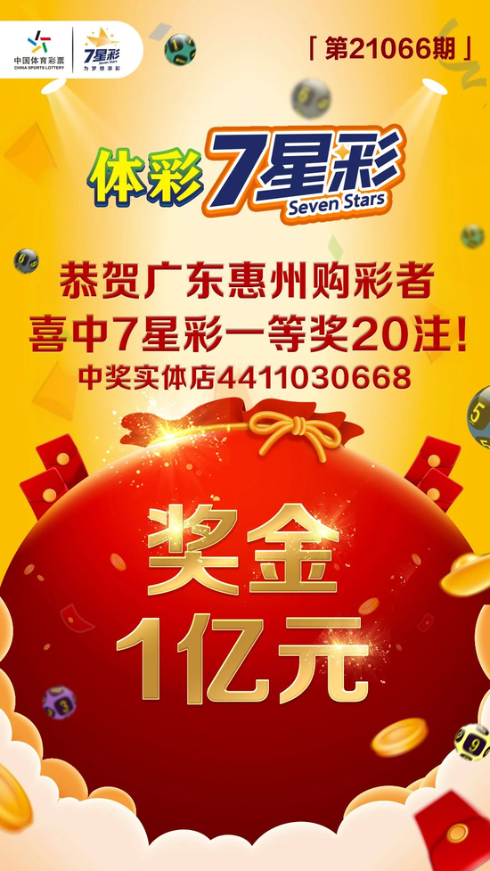 关注6月11日,体彩7星彩第21066期前区开出号码“5、9、1、0、4、4”,后区开出号码“2”。本期全国共中出21注一等奖,其中广东惠州市一幸运儿中得20注一等奖,总计揽得奖金1亿元!