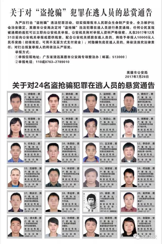 看见他们快报警!清远英德警方悬赏追缉这24人