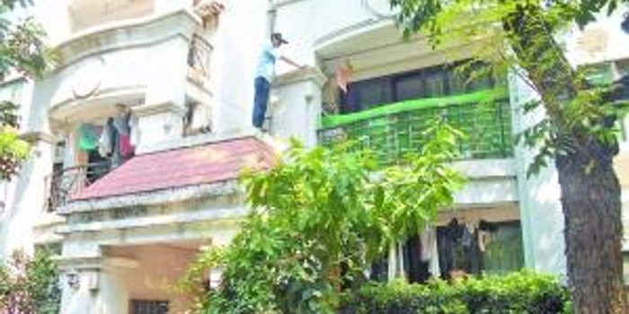 广州日报讯 (全媒体记者 肖桂来摄影报道)近日,番禺区钟村街某小区一户二楼住户阳台电线短路着火,点燃了晒在阳台上的十几件衣服,此时家中并没有人。小区保安及时发现,分工合作,有人拨打119,有人抬梯,有人拿灭火器,有人搭水喷射。最终火势得到控制,没有烧到室内。等住户赶回现场时,火已被扑灭。