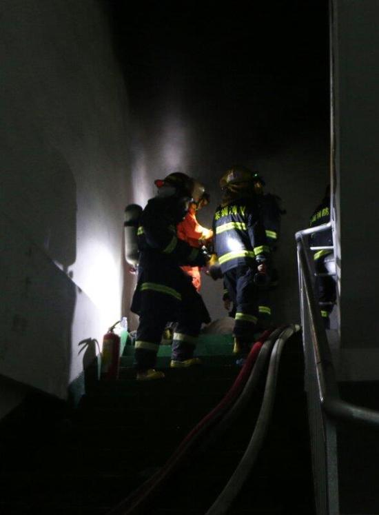 深圳119指挥中心接到警情后,立即调派辖区的消防警力到场处置。离事发地最近的沙头专职消防队,最先赶到现场,出动水枪掩护上楼救人,及时将被困楼顶的12名保安转移到楼下。随后,沙井消防中队、步涌专职消防队等各支增援力量纷纷到场,全力控制火势,扩大楼内搜救范围,最终确认没有其余人员被困。