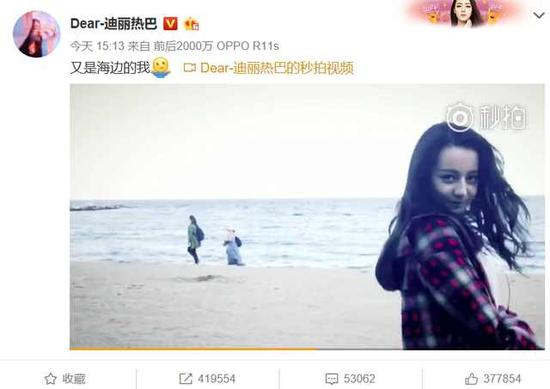 迪丽热巴海边娇羞送飞吻 六个字感动万千网友