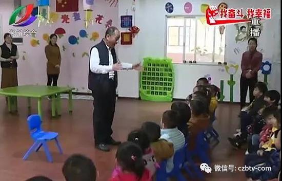 正跟孩子们一起做游戏的就是林振芳,孩子们亲切地称呼他为爷爷。每次回到家乡,林振芳都会来到新塘镇中心幼儿园看一看,陪孩子们玩一玩。