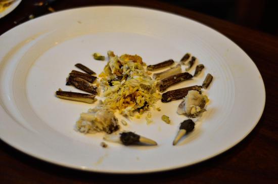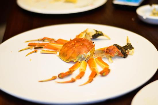 更厉害的的是螃蟹被用蟹八件吃完后,还可将蟹脚、蟹壳几近拼出螃蟹的原貌。吃螃蟹乱嚼一气的吃蟹法,被内行人笑话的,一斤螃蟹能否吃出三两蟹肉是评价吃螃蟹合格与否的标准。