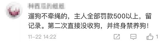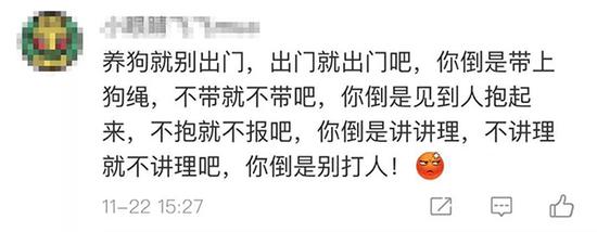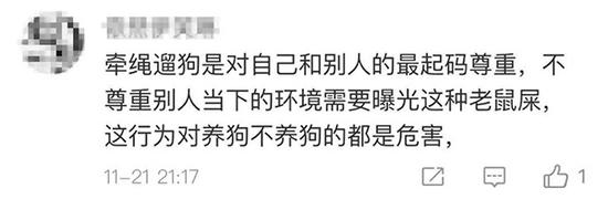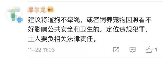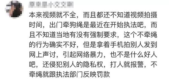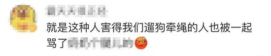 这一视频在微博上也引发网友关注。有人指责遛狗不牵绳行为: