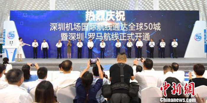 图为深圳机场国际航线通达全球50城暨“深圳-罗马”航线发布仪式。 陈文 摄