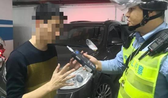 司机正和保安对峙,见到交警出现很是惊诧,一直想往车旁躲,却被保安牢牢抓住。几名交警立即把司机团团围住,不给他机会逃跑,可刚靠近司机,一股浓烈的酒味扑鼻而来。交警皱了皱眉,递上酒精测试仪让司机吹气。司机一脸茫然,对着测试仪用力一吹,不一会,仪器传出“对不起,您喝酒了”的提示音。