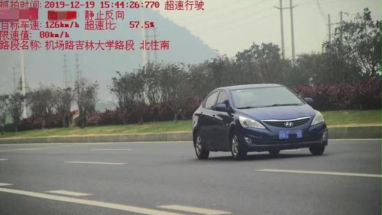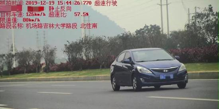 关注12月19日下午3点44分,一辆川A2××M0号蓝色现代小车快速驶过机场路吉林大学路段时,也被电子警察抓拍,车速高达126km/h,超速57.5%。