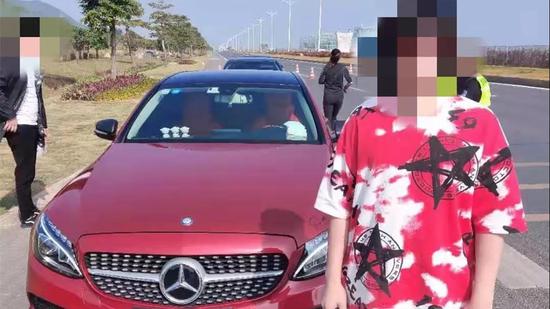 陈警官挥手示意小车停下接受检查。司机身着时髦红色T恤,还是和奔驰小车同色系,副驾驶坐着位黑衣男子,两人愣愣地看着交警,不知道发生了什么。