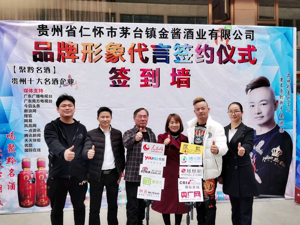 关注2021年1月2日,贵州省仁怀市茅台镇金酱酒业有限公司,聚黔名酒品牌形象代言,著名原创歌手吴庆保,签约仪式在东莞大朗镇举行。