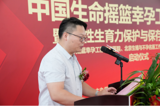 (“中国生命摇篮幸孕工程”组委会曹平秘书长在启动仪式上发言)