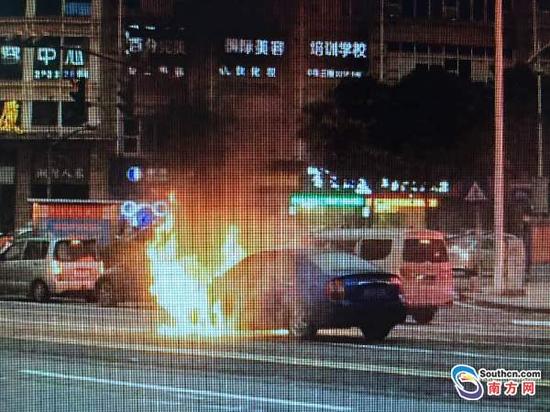 东莞一辆小车下班高峰期自燃成火球 幸无人员伤亡