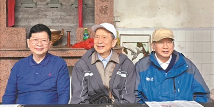 “何门三杰”(从左至右:何国任、何国钟、何国桢)回到家乡狮山沙坳村。