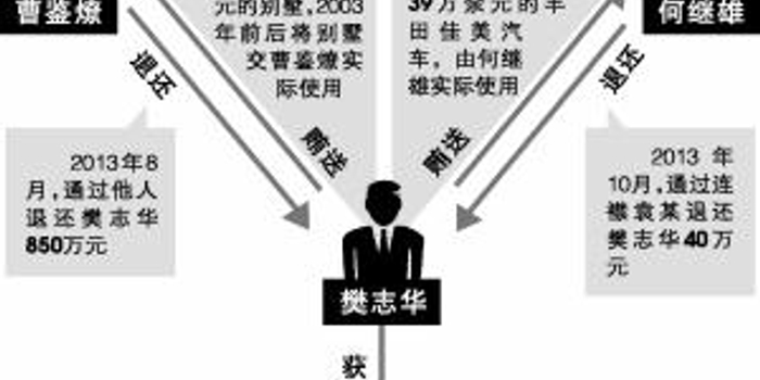 2005年9月,樊志华按照曹鉴燎的要求,与曹鉴燎妻弟曹某一起办理手续将该幢别墅过户至曹鉴燎岳母梁某名下并收取曹某支付的50万元。2009年12月,曹鉴燎指使曹某将该别墅出售得款1770万元。2013年8月,获悉纪检机关正在调查自己的曹鉴燎,通过他人退还樊志华850万元。同年10月,因获悉纪检机关正在调查曹鉴燎,担心牵涉到自己的何继雄通过其连襟袁某退还樊志华40万元。