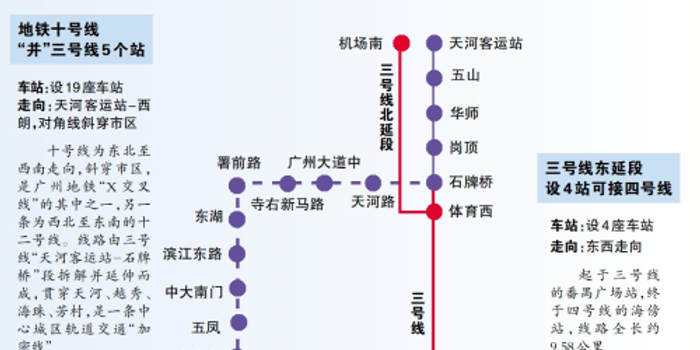 值得注意的是,十号线建成后将与三号线“天河客运站-石牌桥”段贯通运营。换句话说,广州地铁必须在十号线开通前对三号线实施拆解工程,将天河客运站至石牌桥段交由十号线运营,而三号线则只运营番禺广场至机场段。