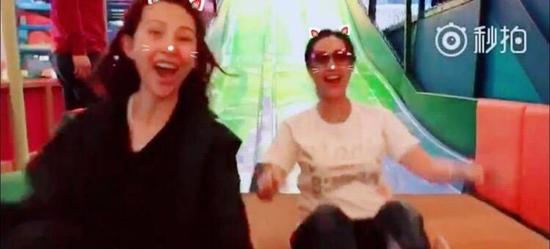朱茵蔡少芬合体玩滑梯不亦乐乎 女神也有少女心
