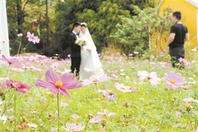 眼下,东莞龙凤山庄的格桑花开得正旺,在春日暖阳中,到处可见来这里拍婚纱照的新人,人与景、俱如画。