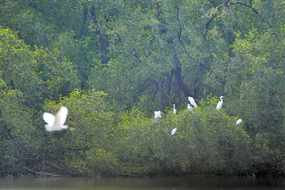 南沙湿地到了一年之中最不能错过的时节。记者来到湿地公园发现,树枝上站满了“黑白两道”两大类鸟。工作人员称,黑的是候鸟苍鹭,白色的是留鸟白鹭。适逢鸟类繁殖季节,即使游船靠近,它们也不惊飞。