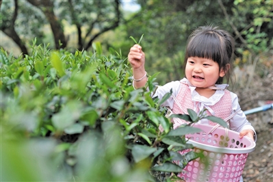 一位小妹妹在从化流溪河国家森林公园茶园体验采茶。广报全媒体记者杨耀烨 摄