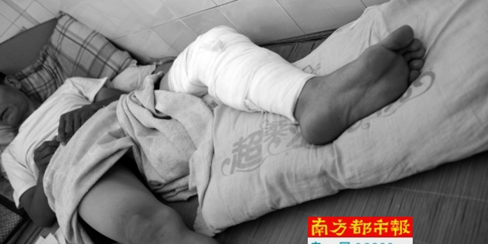 邓兵生的左腿被纱布包裹着。 南都记者 梁炜培 摄
