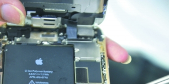 维修人员表示,苹果真机电池旁边的主板有黑色的贴膜。 信息时报记者 陈引 摄