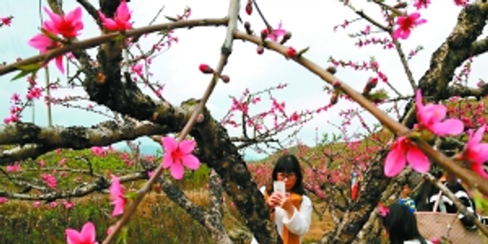 桃花迎春怒放,迎来游客无数。