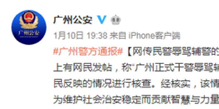 关注(原标题:网传民警辱骂辅警的视频发生地不在广州)