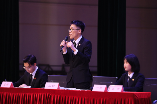 冠军争夺赛中,正反方二辩手在思维逻辑交战中旗鼓相当,在台风气质上不分伯仲,各自凭借自身的专业知识和严密的思维逻辑,将赛场气氛推向高潮,为观众呈现出一场精彩的辩论盛宴。