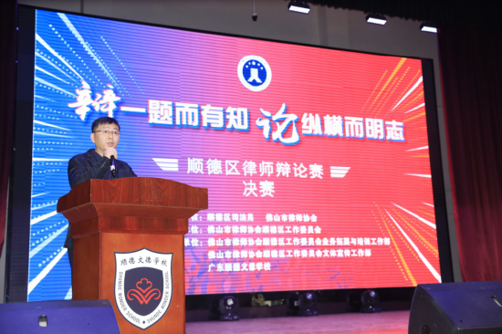 本次律师辩论赛是顺德区司法局、区律师行业党委、市律师协会为学习贯彻落实党的二十大精神,围绕高质量发展,提升律师行业业务能力,发掘人才、锻炼人才、培养人才的一次“大练兵”,通过比赛促进专业知识转化为实务能力,促进青年律师成长,对于树立律师行业正面形象,打造法治化营商环境具有重要意义。