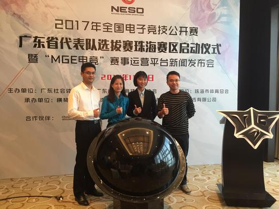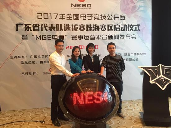 关注2017年11月3日由广东省社会体育中心、广东省电子竞技运动协会主办,珠海市体育总会支持,横琴卓越互动科技有限公司承办的2017年全国电子竞技公开赛广东省代表队选拔赛珠海赛区启动仪式暨“MGE电竞”赛事运营平台新闻发布会在珠海召开。