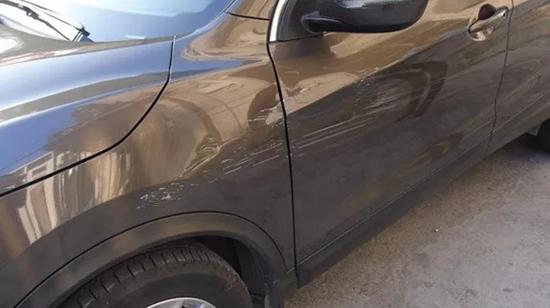 等到他回到家,看到左侧车头凹陷,车身全部被刮花,连轮胎、轮毂都留下了刮痕。邹某越想越不对劲,于是打开行车记录仪的视频,看了好几遍才发现原来玻璃是从一辆小车上飞出来的。于是他带着内存卡来到来到斗门交警大队,希望交警帮他调查。