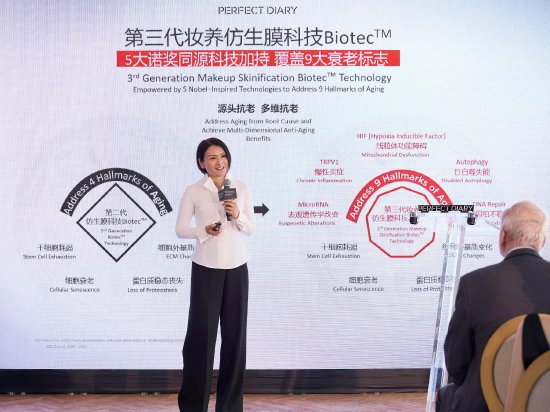 诺贝尔奖教授Hartmut Michel高度肯定完美日记将前沿科技融入日常抗衰的突出成效,并特别指出,“完美日记基于诺贝尔奖的同源科技,正在让前沿科技走进日常生活,为消费者带来更科学、更高效的抗老体验”。沙利文机构也于现场为完美日记‘仿生膜’精华口红颁发全球销量第一认证,标志着国货美妆科研实力再获国际权威机构认可,其市场领先地位得到有力印证。
