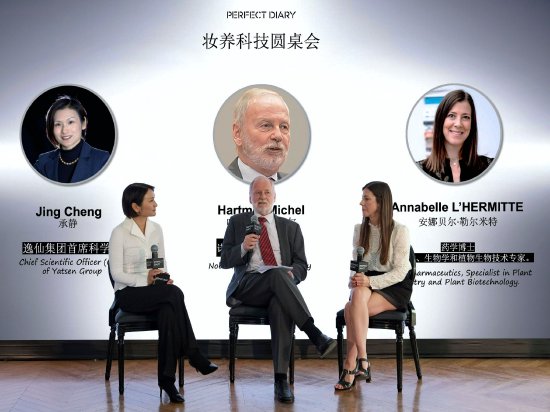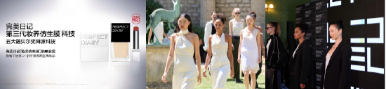 7月,巴黎合伙人综艺录制同期,完美日记携诺贝尔化学奖得主、德国国家科学院院士Hartmut Michel,药学博士及石榴花精粹技术专家Annabelle Lhermitte,何超莲女士,沙利文机构代表Benoit Butruille等权威人士亮相巴黎,共同参与‘完美日记妆养科技全球领先论坛’暨‘第三代仿生膜科技升级&妆养美学发布会’。作为全球领先妆养科技论坛,展现出了中国美妆品牌在妆养一体领域的深刻洞察,以及全球领先的科技高度。