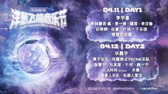 关注2026音乐奇航大湾区洋葱飞船音乐节全阵容现已公布,门票火热售卖中,现已进入活动倒计时。这周末就能加入这场春日户外狂欢!全国各地的乐迷们准备好在广州南沙音乐秀场集合了吗?
