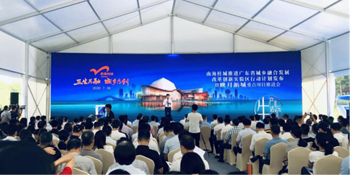 摘要: 7月30日上午,佛山南海桂城推进广东省城乡融合发展改革创新实验区行动计划发布暨映月新城重点项目推进会在映月湖公园举行。2020年7月30日上午,佛山南海桂城推进广东省城乡融合发展改革创新实验区行动计划发布暨映月新城重点项目推进会在映月湖公园举行,南海区委书记闫昊波、南海区桂城街道党工委书记麦绍强、桂城街道办事处主任岑灼雄等人参加了活动。会上发布了《南海桂城推进广东省城乡融合发展改革创新实验区行动计划(2020-2022年)》,对映月新城重点项目进行推介,随后对重点产业、城市更新、主题产业园区等28个映月新城重点项目进行签约。