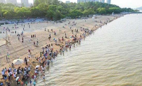 今年国庆假期期间,南沙湾滨海岸线的新建沙滩成为不少市民游客的度假选择。“想不到广州也有了坐地铁就可前往的沙滩,在这里看着宽阔的珠江奔流向海,非常有感觉。”市民李先生带着家人第一时间前往打卡。