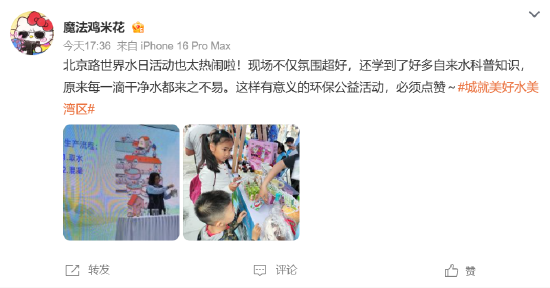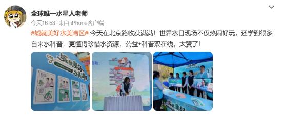 活动主题微博话题#城就美好 水美湾区#于3月21日登上微博热搜前列,单日阅读量突破735万次,互动讨论量超5000人次;21日下午的线下公益活动吸引大量市民围观,2小时活动线上线下联动超300人次。