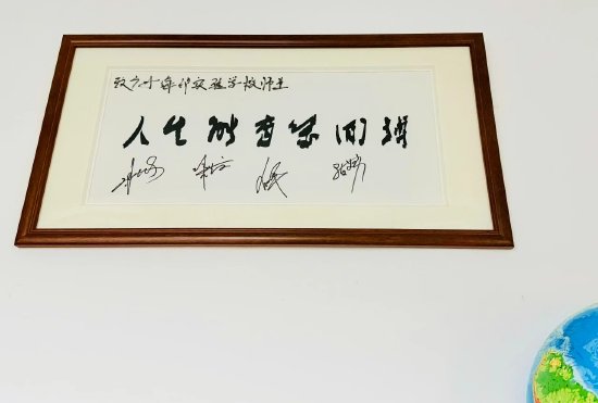 由谢思埸、陈艺文、全红婵、陈艾森亲笔签名赠送我校全体师生的“人生能有几回搏”字画时刻激励着我们。