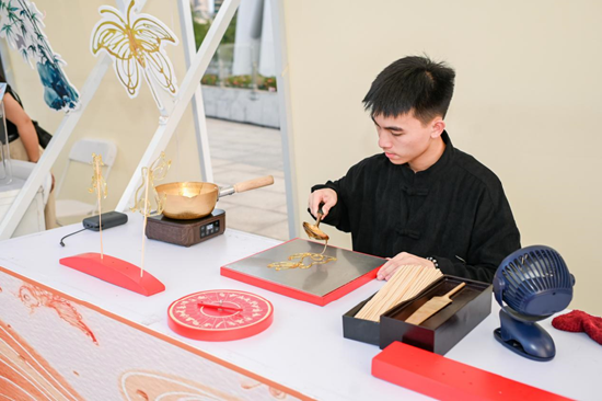 非遗体验区同样精彩,多位非遗技艺代表性传承人、传承师带来广绣、剪纸、年画、糖画的现场秀。嘉宾们不仅能近距离观赏传统技艺,还能动手解锁非遗制作体验。