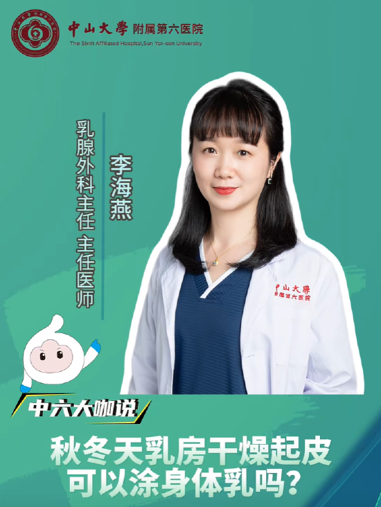 关注秋冬天一到,不少女性受到乳房皮肤干燥起皮的困扰,既担心这是否为乳腺疾病的信号,又对涂抹身体乳心存顾虑。是否安全?会不会影响乳腺?孕期或哺乳期能否使用?中山六院乳腺外科主任李海燕主任医师为您解答疑惑,并分享胸部护理的实用建议。