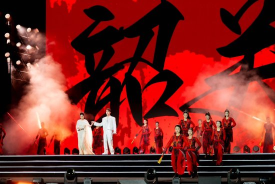 晚会伊始,一曲气势恢宏的《龙的传人》拉开序幕。粤剧一级演员曾小敏与广府文化宣传大使梁山山、BFJ携手韶关学院师生及非遗传承中心表演者共同献唱。梁山山沉稳而富有张力的演唱,与磅礴的伴奏、恢弘的场面相得益彰,不仅传递出龙的传人的自豪,更展现了广府人承古开新的精神气魄,赢得了满堂彩。