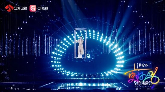 本次荔枝跨年以“星际之眼”为视觉主题,定制年度美学符号:巨型环形结构勾勒出“眼眸”轮廓,无数水滴状装置组成“水滴舰队”悬于空中,呈放射状布局,可随旋律灵活切换形态,时而如星河漫卷,时而如海浪奔涌。当灯光穿透“水滴舰队”,整个舞台化作“星际之眼”,用简洁而深邃的技术语言,演绎深情且浪漫的时光守望,精妙呼应迎接“更好”的晚会主题。